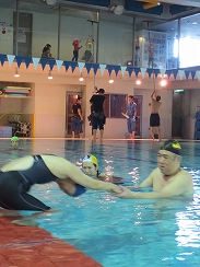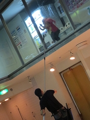 掃除をしてくれるお兄さんたちとレッスンを終えたJコースのお友達が