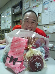 さて、選手のコーチは女の子達にい~っぱい手作りチョコをもらってました