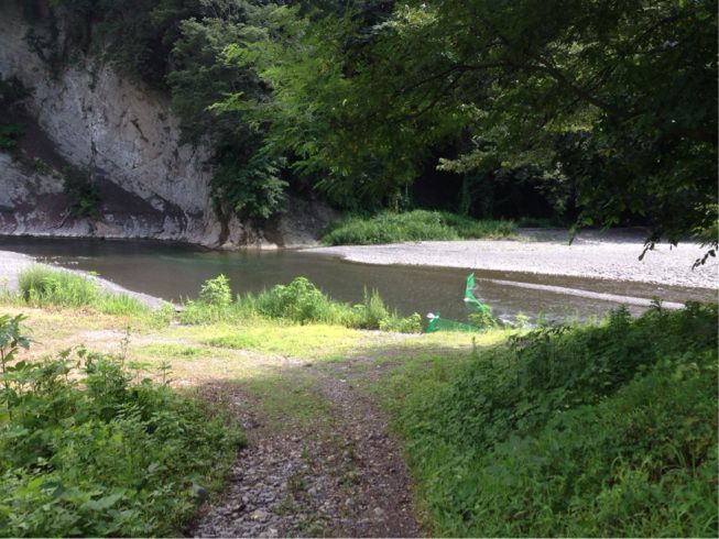 この川で遊びます。