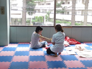 そして、今回はママたちも先生にマッサージしてもらって体験