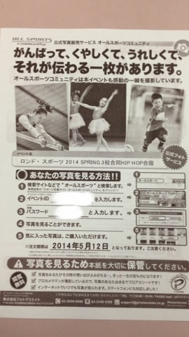 3月に行われた、HIPHOP合宿の写真がインターネットにて閲覧・購入できます