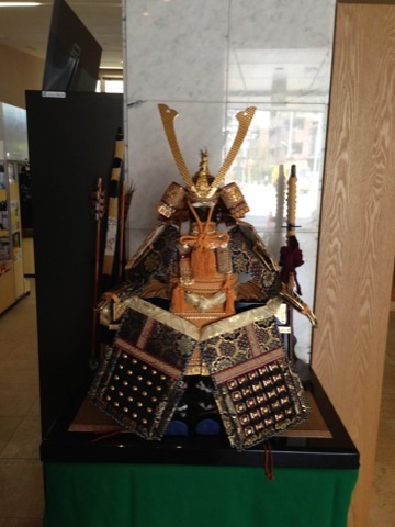 スイミングスクール・カルチャースクールのお隣のフィットネスクラブの受け付け前に、こんなに大きな兜の置物が置いてあります!
