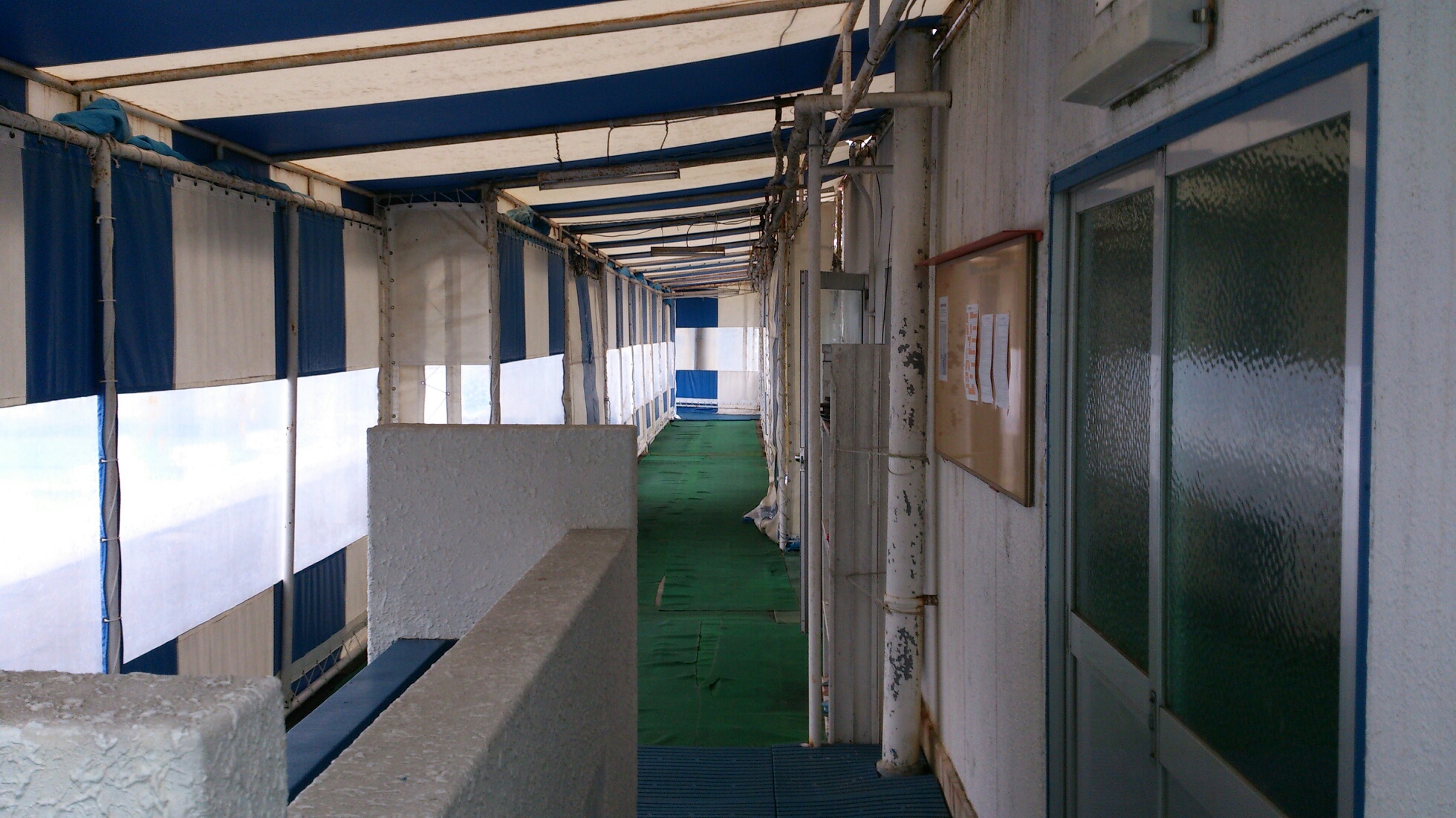 ちなみにこの廊下はプールへの道なのですが、外と隣接してるため非常に寒いのです(T_T)練習始まる前も終わった後も選手達はダッシュで行き来しています!いいトレーニングになりますね^_^;