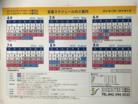 ロンドスイミングスクールとロンドカルチャースクールは、今日と明日の二日間は休館日です。