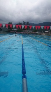 初日は、曇り空の中たくさん泳いだそうです