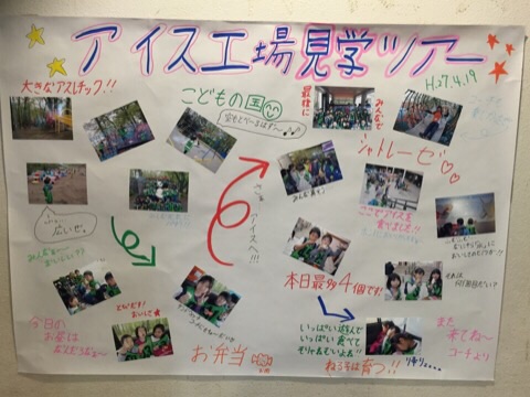 先日行われた、アイス工場見学ツアーの写真が館内に掲示されました