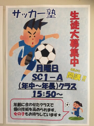 本日は、サッカー塾増設のお知らせです