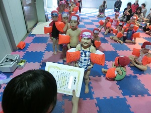 今日は、アヒルクラスで週2回通っているお友達が代表して賞状をもらいました