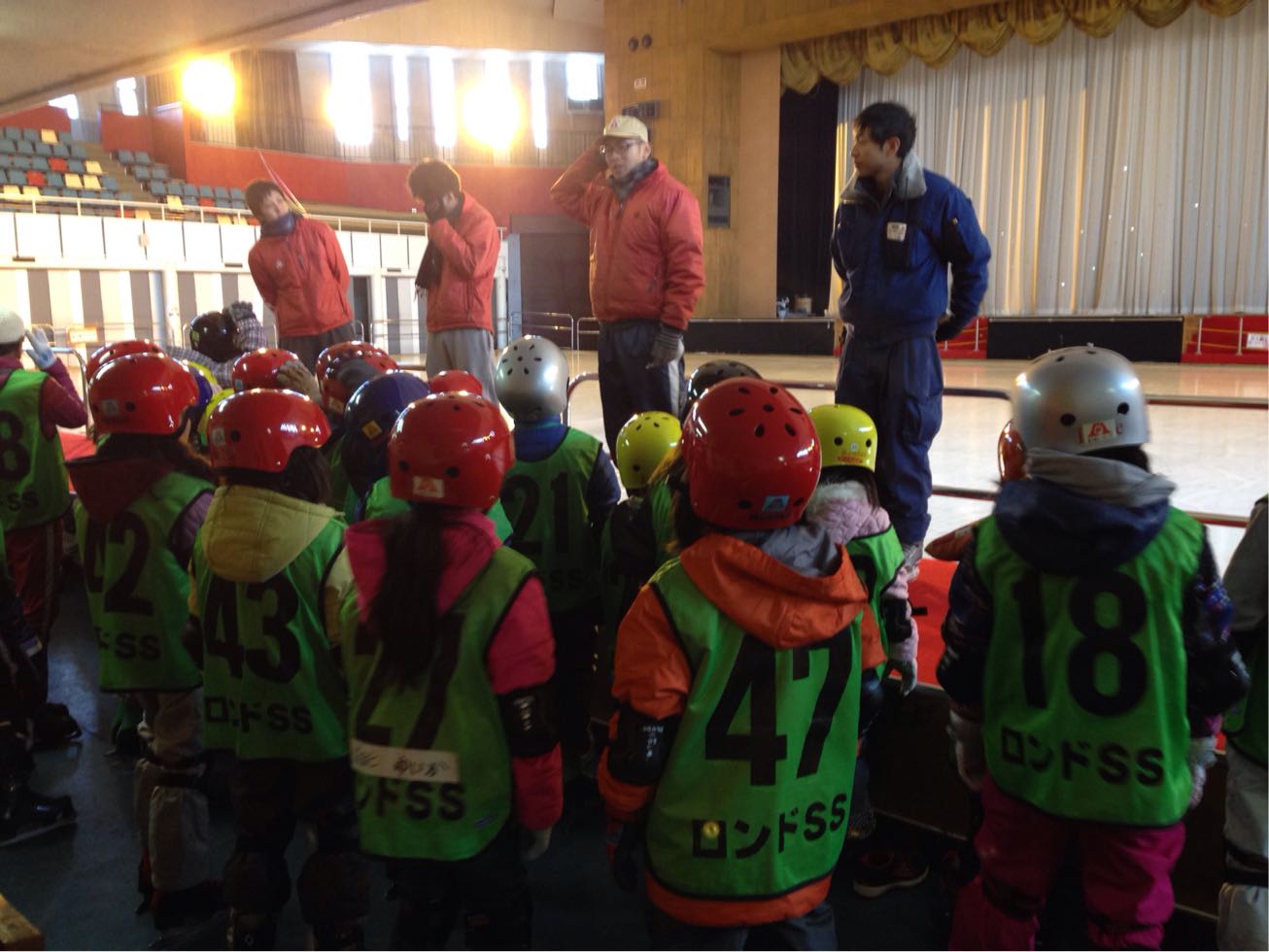 準備ばっちりで今はスケートを教えてくれる先生のお話を聞いてる最中です。滑り方や注意事項など、、