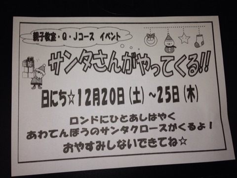 この期間にお休みしてしまうとサンタさんに会えなくなってしまうので、風邪をひかないように気を付けてね