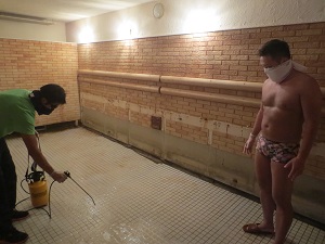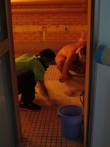 朝のプールに続き、2階のサウナもお掃除